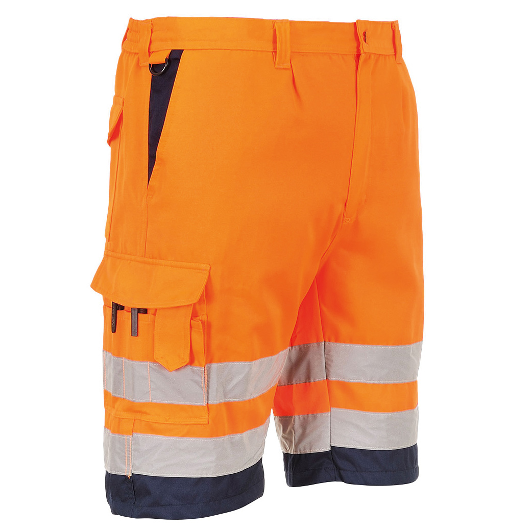Modern geschnittene knielange Shorts. Im zweifarbigen Design ist diese Shorts ideal für warme Tage. Ausgestattet mit einer Zollstocktasche, Handy-Tasche und einem halbelastischen Hosenbund für hohen Tragekomfort.
