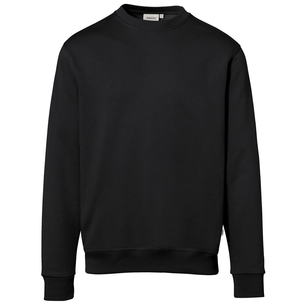 Klassisches Sweatshirt mit rundem Halsausschnitt, formstabilen Bündchen mit LYCRA®-Anteil, flauschig angerauter Innenseite und Nackenband. Hergestellt aus pflegeleichter Baumwoll-Polyester-Mischung für höchste Ansprüche. Gewebtes HAKRO Necklabel aus hochwertigem Kettsatin mit weichen, ultraschallgeschnittenen Bandkanten für höchsten Tragekomfort und gewebtes HAKRO Flaglabel an der linken Seitennaht.
