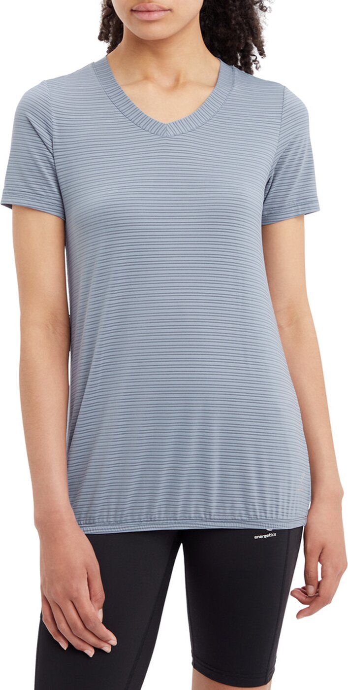 Mit dem sportiven Kurzarmshirt Ganja von ENERGETICS bist du für die Fitnessstunde passend und bequem gekleidet. Dank integrierter DRY PLUS-Technologie wird anfallende Feuchtigkeit schnell von der Haut wegtransportiert und auf diese Weise ein angenehm kühles und trockenes Körperklima bewahrt. Das T-Shirt besitzt einen dünnen Gummi am Bundabschluss. Material: 88% Polyamide, 12% Elasthan