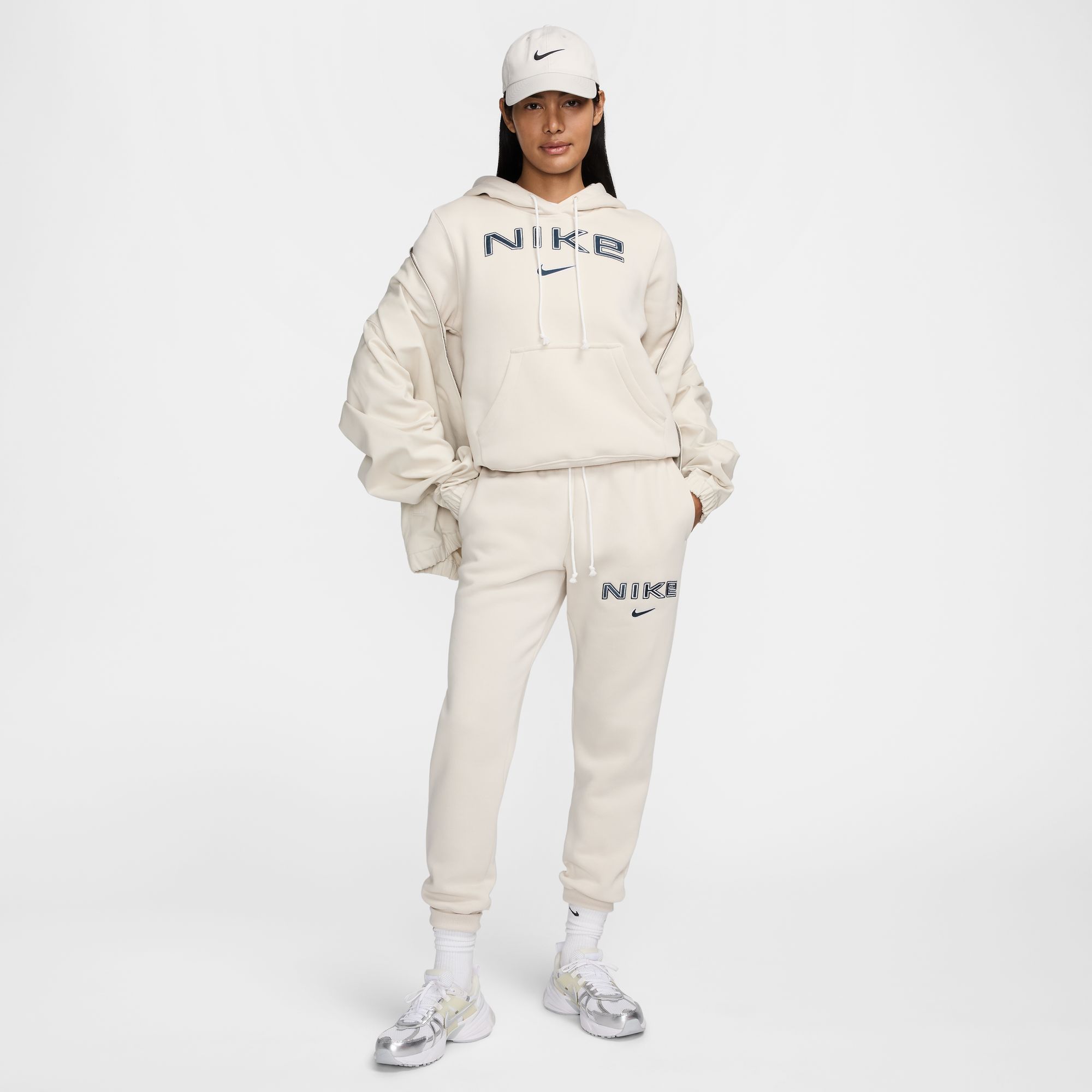 NIKE W NSW PHNX FLC STD PO LOGO HDY LT OREWOOD BRN/WHITE/ARMORY NA