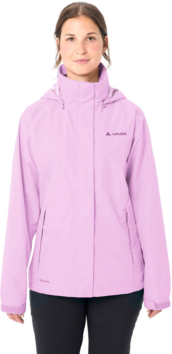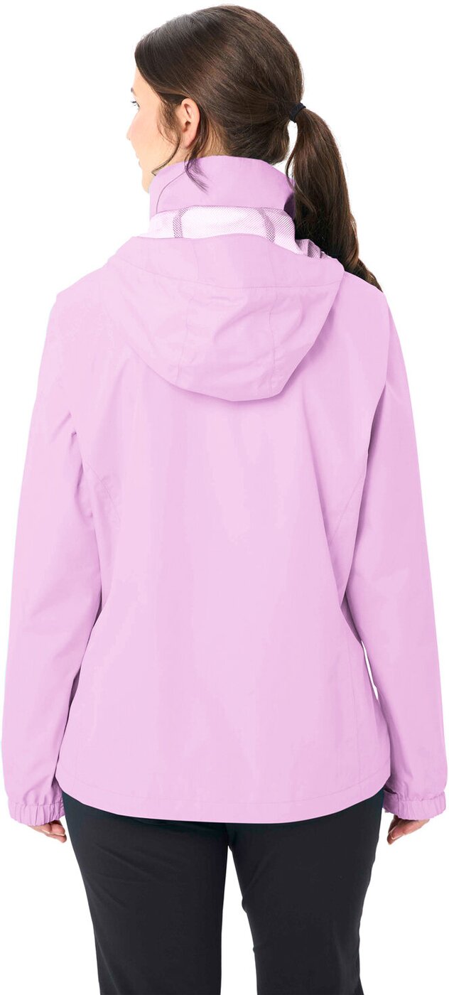 Diese leichte Regenjacke für Damen hat sich längst als besonders beliebt etabliert ? und das aus gutem Grund: Sie ist eine ideale Begleitung für Wanderungen und sämtliche Freizeitaktivitäten. Die Damen Regenjacke ist wasser- und winddicht sowie atmungsaktiv. Wenn man die Kapuze der Damen Regenjacke nicht braucht, kann man sie einfach im Kragen verstauen. Geldbeutel und Taschentücher finden in den beiden sicher mit Reißverschluss verschließbaren Taschen Platz. Sowohl Saum als auch die Ärmelenden lassen sich in der Weite verstellen; der Saum per Kordeln, die Ärmel per Klettverschluss. Sollte der Zwei-Wege-Reißverschluss an der Vorderseite eventuell kaputt gehen, ist er einfach zu reparieren. Das VAUDE Green Shape-Label steht für ein umweltfreundliches, funktionelles Produkt aus nachhaltigen Materialien. Material: Hauptstoff: 39% Polyester, 36% Polyacryl, 25% Elastodien