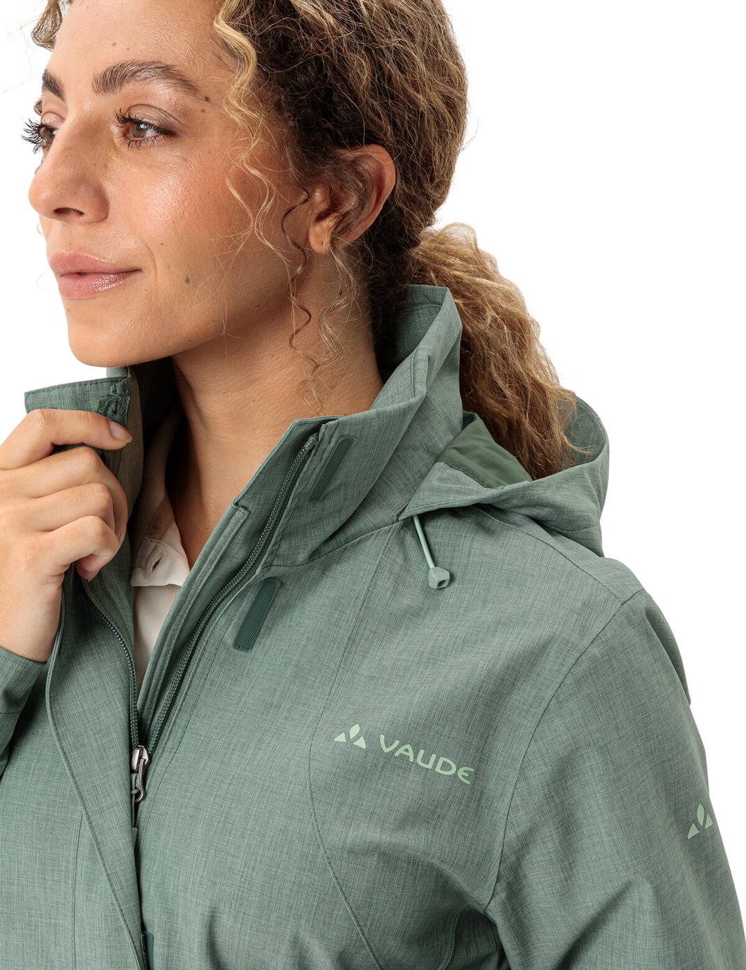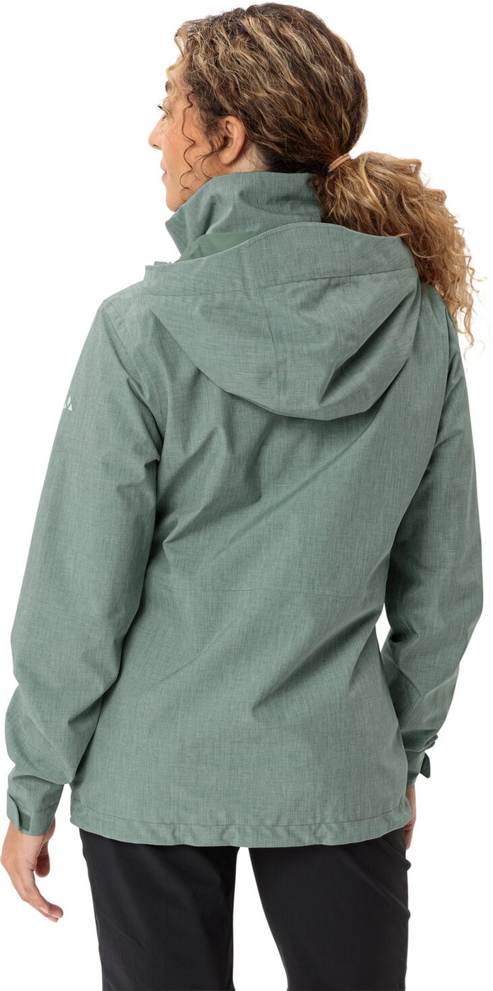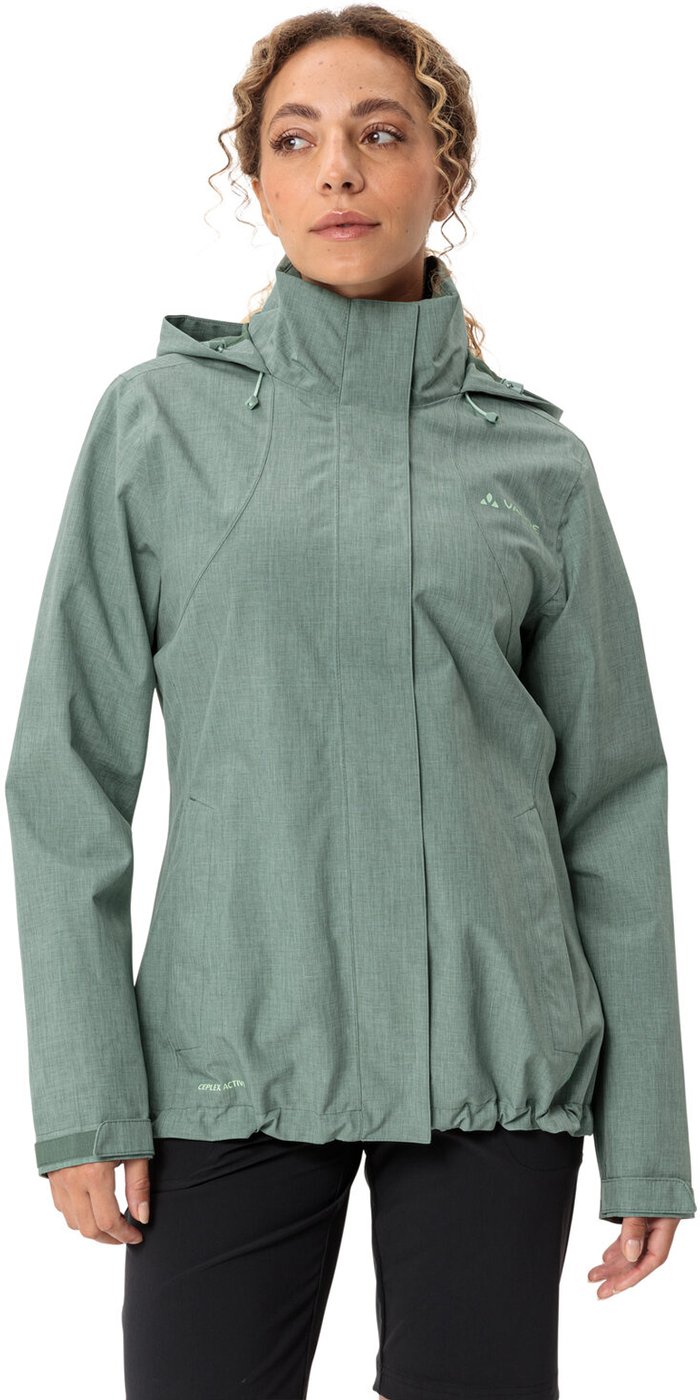 Nachhaltig, funktional, vielseitig und schick: Die Rosemoor Jacket II ist eine Damen-Regenjacke für alle Fälle und vielseitig einsetzbar. Sie schützt zuverlässig vor Wind und Wetter und ist dank der Ceplex-Active Membran hoch atmungsaktiv. Das Außenmaterial besteht zu 100 % aus recyceltem Polyester und auch im Innenfutter wurden anteilig recycelte Materialien verwendet. Damit ist die Regenjacke für Damen rundum umweltfreundlich und sieht dank der modischen Melange-Optik richtig gut aus. Ärmelbündchen, Saum und Kapuze sind individuell regulierbar. Wenn die Kapuze nicht gebraucht wird, kann sie schnell und einfach im Kragen der Regenjacke für Damen verstaut werden. Dieses Produkt ist mit Eco Finish umweltfreundlich wasserabweisend ohne Fluorcarbone (PFC) hergestellt. Das VAUDE Green Shape-Label steht für ein umweltfreundliches, funktionelles Produkt aus nachhaltigen und bluesign® zertifizierten Materialien. Material: Hauptstoff – Aussenseite: 100% Polyester (recycelt); Membran: 100% Polyurethan, Netzfutter : 100% Polyester, Futter : 100% Polyamid