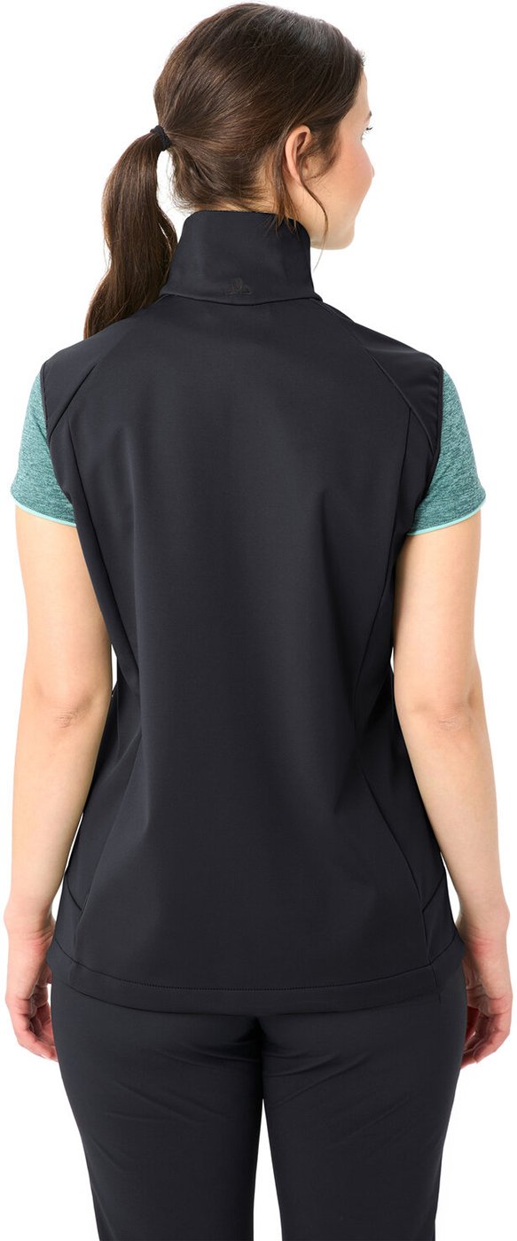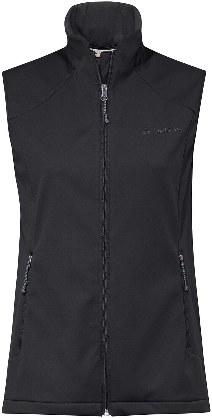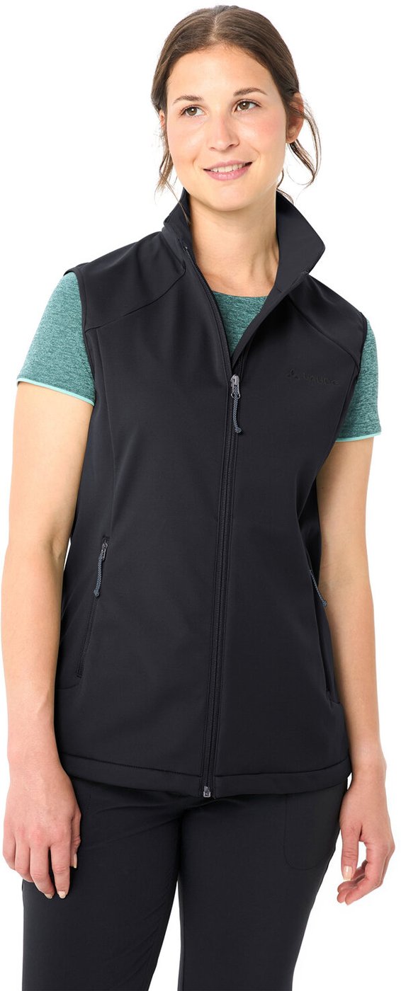Die Everhike Softshellweste für Damen ist ein vielseitiges Must-have für Outdoor-Enthusiastinnen. Sie bietet zuverlässigen Schutz vor Wind und hält den Oberkörper warm ? perfekt als zusätzliche Wärmeschicht an kühleren Tagen. Der Stehkragen schützt an windigen Tagen den Hals und Nacken zusätzlich vor Zugluft. Ein besonderes Plus der Everhike Softshellweste ist das innovative, elastische Softshell-Material, das sich jeder Bewegung anpasst und uneingeschränkte Flexibilität garantiert. Die Innenseite mit leichter Mesh-Struktur unterstützt die Atmungsaktivität, indem sie Feuchtigkeit effektiv nach außen leitet. So bleibt die Weste auch bei wärmeren Temperaturen und schweißtreibenden Aufstiegen angenehm zu tragen. Zwei Reißverchluss-Taschen schaffen Stauraum für Riegel oder Smartphone. Der Saum lässt sich in der Weite verstellen. Wer eine bequeme, funktionale Weste für Outdoor-Abenteuer und den Alltag sucht, trifft mit der Everhike Softshellweste die perfekte Wahl. Der Oberstoff der Everhike Softshellweste für Damen ist mit Eco Finish wasser- und schmutzabweisend ausgerüstet. VAUDE verzichtet dabei auf Fluorcarbone, sogenannte PFAS- beziehungsweise PFC-Chemikalien, die im Verdacht stehen, gesundheitsschädlich zu sein. Das VAUDE Green Shape-Label steht für ein umweltfreundliches, funktionelles Produkt aus nachhaltigen Materialien. Material: Hauptstoff – Aussenseite: 100% Polyester (recycelt), Membran: 100% Polyurethan, Innenseite: 100% Polyester (recycelt), Taschenfutter: 100% Polyester (recycelt)