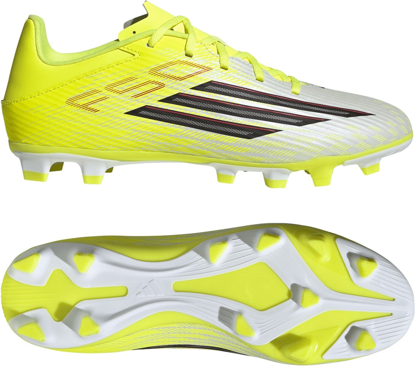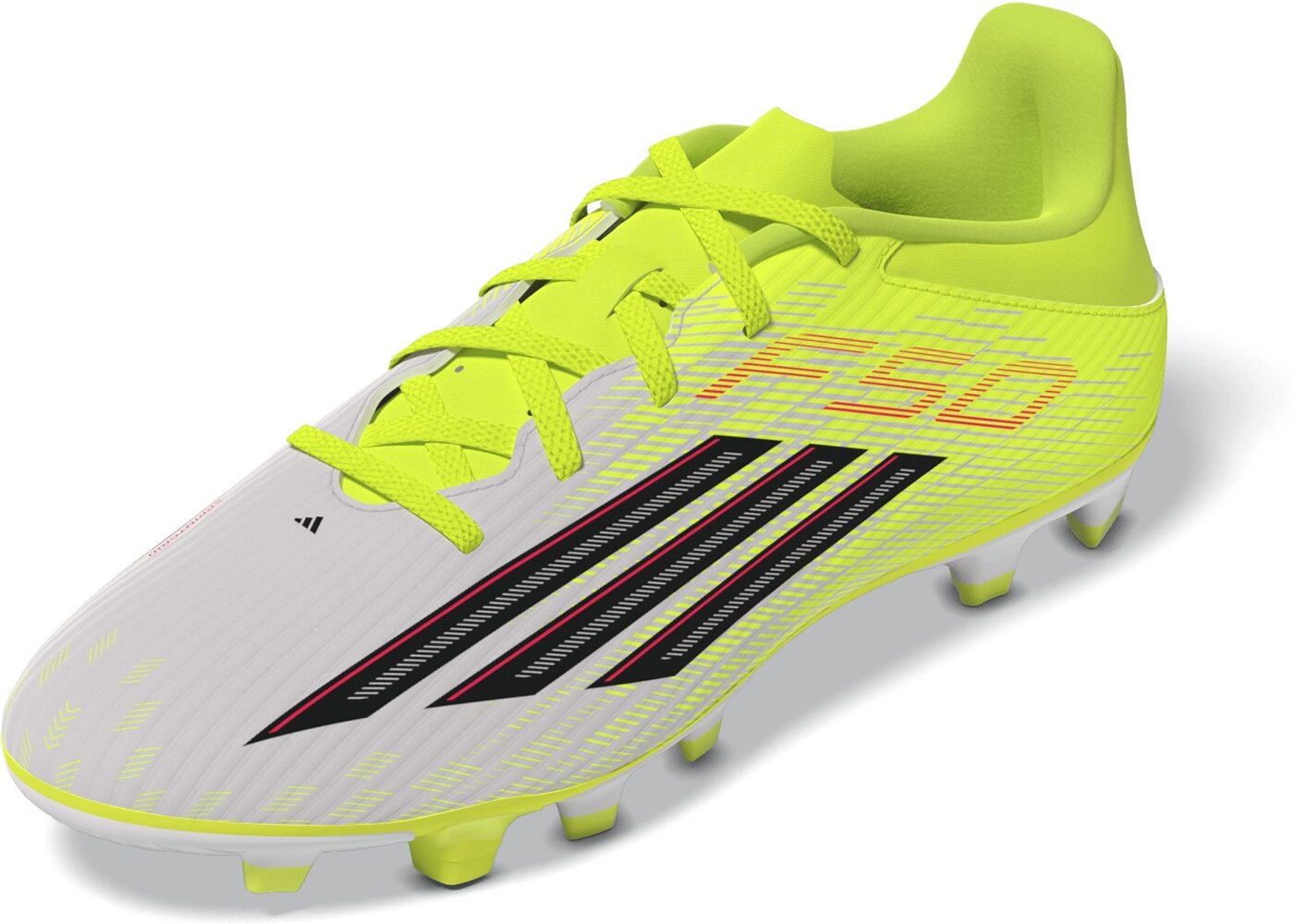 Der F50 Club Firm Ground,Multi Ground Fußballschuh ist ideal für gewagte Spielzüge auf dem Spielfeld. Er ist auf Unterstützung und Präzision ausgelegt und liefert Leistung bei jedem Schritt. Das Fiberskin Obermaterial verfügt über strategisch platzierte 3D-Linien, die das Ballgefühl verbessern und ein besonders leichtes Tragegefühl vermitteln. Mit diesem Schuh wirst du von einer erhöhten Wendigkeit und weniger Reibung profitieren. Die Sprintgrid Technologie ergänzt das Modell um einen 2D-Print am Schmutzfang, der von Profi-Designs inspiriert ist. Durch die Kombination von High-Performance-Optik und strapazierfähiger Konstruktion spielst du selbstbewusster bist so schnell, wie du dich fühlst. Die synthetische, frei liegende Zunge verfügt über Löcher, die die Luftzirkulation und den Komfort erhöhen. Jetzt kannst du bei jedem Spiel alles geben und spüren, wie deine Füße vom Anpfiff bis zur letzten Minute angenehm kühl bleiben. adidas hat jedes Detail dieses Schuhs auf Kontrolle und Komfort abgestimmt, damit du dich ganz auf deine Leistung konzentrieren kannst. Er ist für alle gedacht, die das Tempo auf dem Spielfeld lieben, und bringt frische Energie in jedes Spiel.