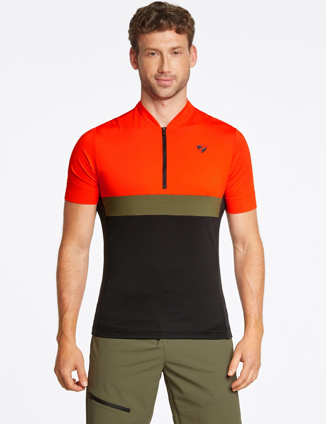 Das funktionelle ZIENER Herren Fahrradtrikot NARRAN MAN mit einem halben Front-Reißverschluss und Stehkragen garantiert dank schnelltrocknendem und stretchigem Material optimalen Tragekomfort. In der Rückentasche mit Reißverschluss lassen sich die wichtigsten Dinge verstauen. Die Silikonbeschichtung am hinteren Saum sorgt für perfekten Halt am Rücken. Material: Obermaterial: 1. 92% Polyester, 8% Elasthan; 2. 92% Polyester, 8% Elasthan
