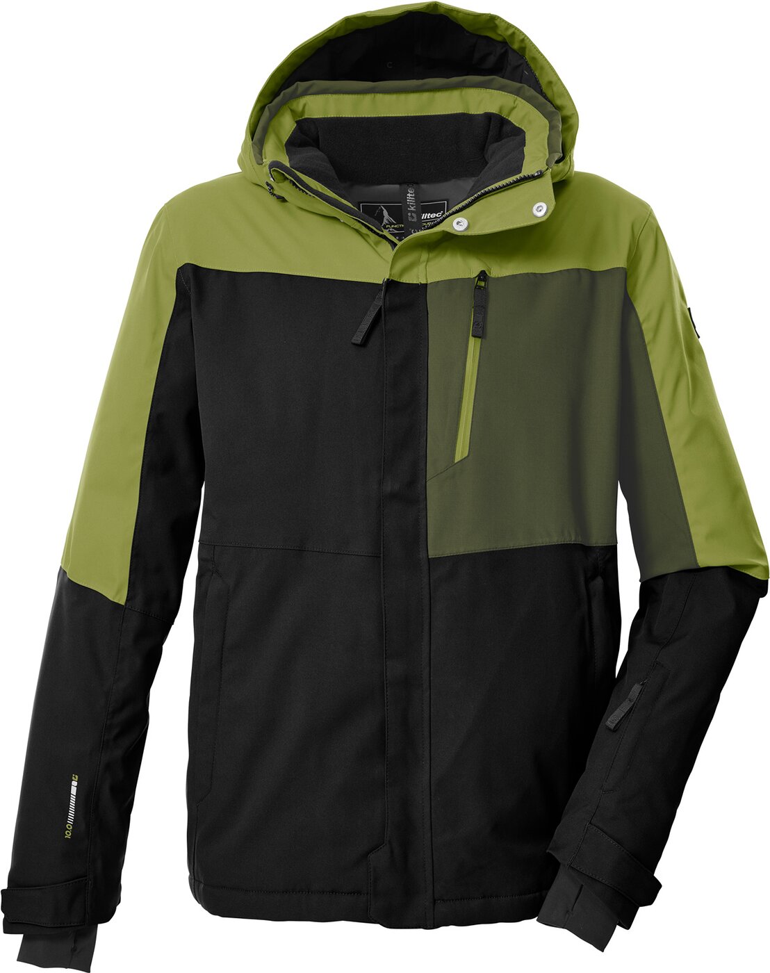 Mit der Herren Funktionsjacke von killtec im Colourblock Design sind dem Wintersportvergnügen keine Grenzen gesetzt. Mit wasserdichten Reißverschlüssen und verschweißten Nähten ausgestattet, ist die Jacke wind- und wasserdicht (10.000 mm, Tipp: ab und zu sollte die Jacke neu imprägniert werden). Gleichzeitig ist die Jacke atmungsaktiv mit einer Wasserdampfdurchlässigkeit von 5.000 g/m²/24 h. Die Skijacke ist mit einem rutschfesten Schneefang sowie verstellbaren Ärmelabschlüssen mit Lycracuffs ausgestattet. Der verdeckte Reißverschluss ist mit einem Kinnschutz versehen. Zahlreiche Taschen bieten Platz für Skibrille, Skipass, Handy und Co. Die Weite der abnehmbaren Kapuze und des Saumes ist regulierbar. killtec liegt es besonders am Herzen, die Kollektionen nachhaltiger und zukunftsfähiger zu machen. So setzt killtec verstärkt auf verantwortungsbewusstere Herstellungsverfahren. Diese Jacke wurde daher PFAs-frei imprägniert und teilweise aus recyceltem Material hergestellt. Material: Oberstoff: 100% Polyester, Futter: 100% Polyester, Wattierung: 100% Polyester (recycelt)