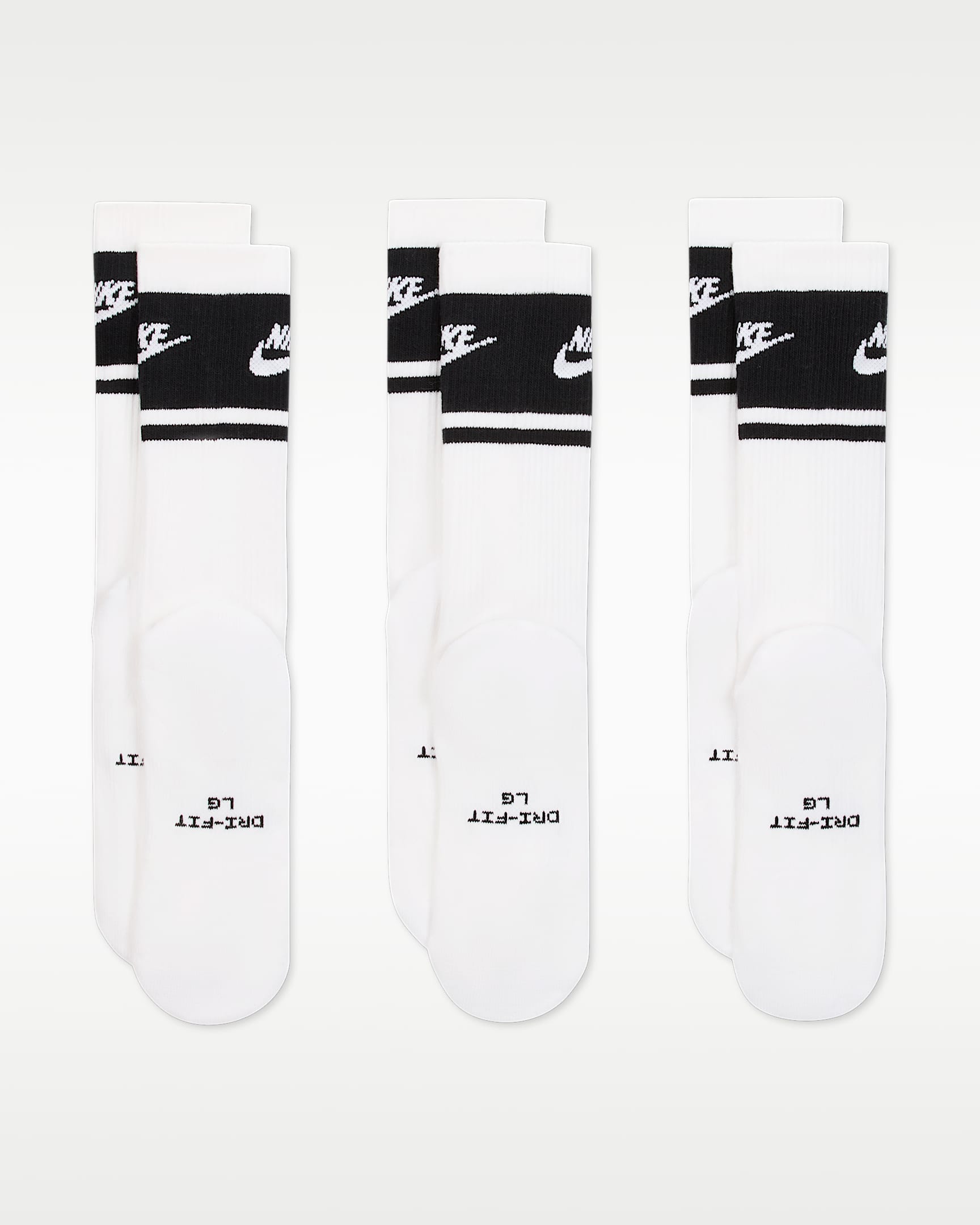 Ein Upgrade für deinen Alltag. Wir haben unsere Signature-Socken in jeder Hinsicht verbessert. Von weicheren Garnen, die ihre Form behalten, über eine wolkenweiche Dämpfung für ultimativen Komfort bis hin zu einer aktualisierten, eng anliegenden Passform – mit ihnen wird jeder Schritt zum Kurzurlaub. Die Dämpfung an Ferse und Fußballen sorgt für ein weiches Tragegefühl. Die technische Unterstützung des Fußgewölbes und die aktualisierte Passform umschließen deinen Fuß und sorgen für ein bequemes, rutschfestes Tragegefühl. Die verstärkten Zehen und die Ferse sind so konzipiert, dass sie der täglichen Beanspruchung mühelos standhalten. Die Nike Dri-FIT-Technologie hält dich angenehm trocken. Das durchgehende Mesh auf dem Fußrücken sorgt für Atmungsaktivität. Die unter dem Fuß aufgenähte Größe verhindert Verwechslungen beim Anziehen. 67 % Baumwolle/30 % Polyester/3 % Elastan. Maschinenwäsche Importiert