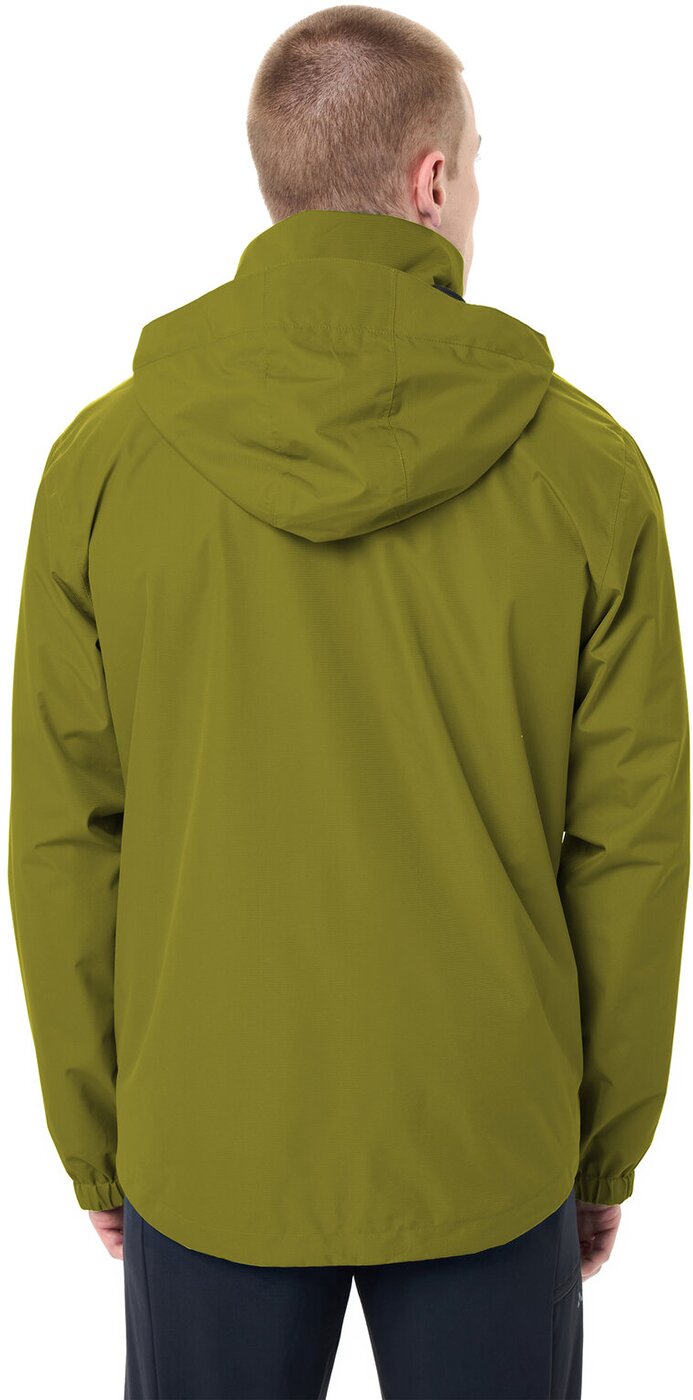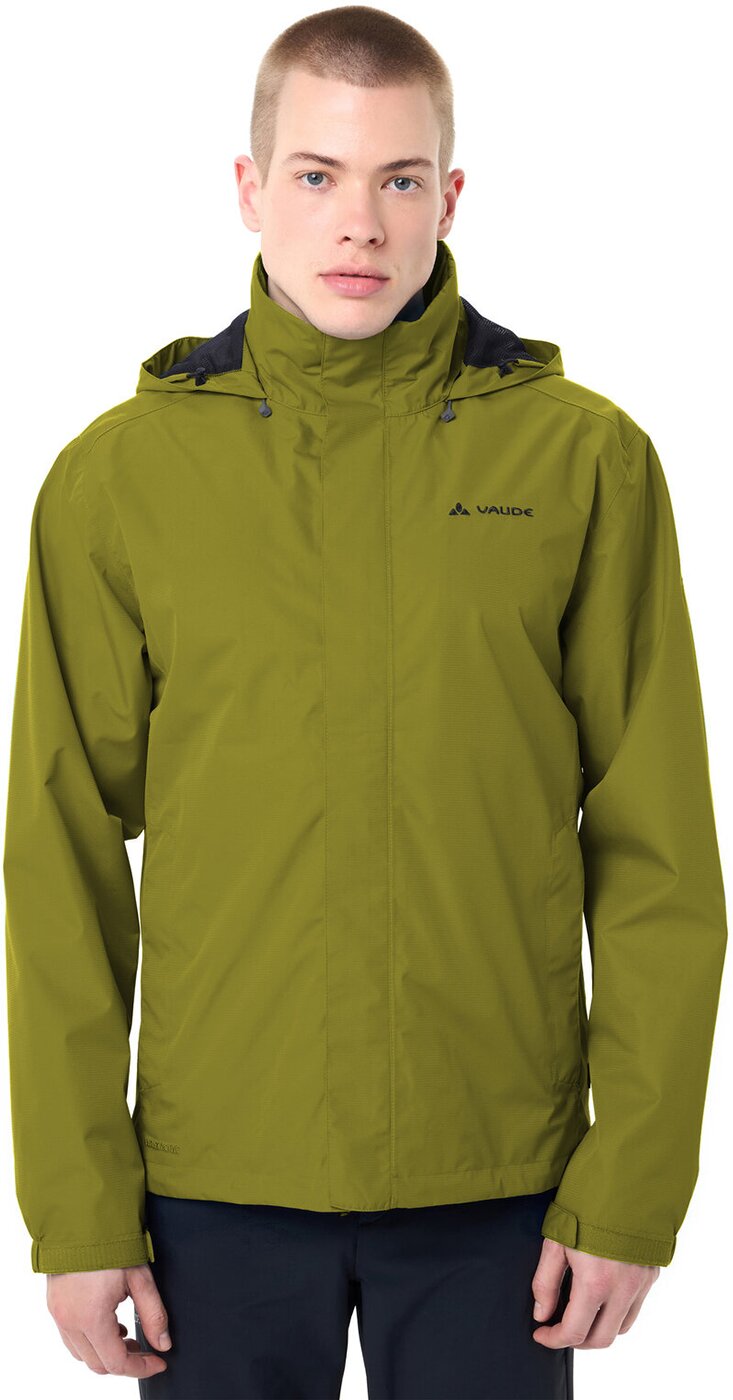 Diese leichte Herren Regenjacke ist seit Langem besonders beliebt ? aus guten Gründen. Sie ist hervorragend für Wanderungen und Freizeitaktivitäten. Die Herren-Regenjacke ist wasser- und winddicht sowie atmungsaktiv. Die Kapuze lässt sich bei Bedarf ganz praktisch im Kragen verstauen. Auch der Stauraum kommt nicht zu kurz: In den zwei Reißverschlusstaschen haben Geldbeutel und Taschentücher Platz. Der Zwei-Wege Reißverschluss auf der Vorderseite der Herren Regenjacke ist zudem leicht zu reparieren, sollte er nach langem Gebrauch einmal kaputt gehen. Sowohl der Saum- als auch die Ärmelabschlüsse sind individuell anpassbar ? per Kordelzug am Saum und Klettverschluss an den Ärmeln. Das VAUDE Green Shape-Label steht für ein umweltfreundliches, funktionelles Produkt aus nachhaltigen Materialien. Material: Hauptstoff: 74% Polyester (recycelt), 26% Elasthan
