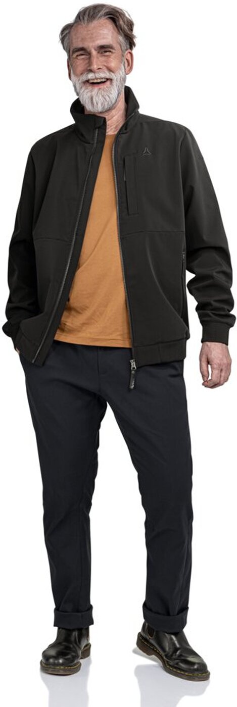 Diese Softshell Bomberjacke von Schöffel bietet Dir einen sportlich-urbanen Look und optimale Funktionalität. Das Venturi® Softshell-Material ist wasser- und windabweisend und dank seiner hohen Atmungsaktivität ideal für aktive Tage. Die Fleece-Innenseite hält Dich angenehm warm, während der Stehkragen mit Kinnschutz und der 1-Wege-Reißverschluss für zusätzlichen Komfort sorgen. Elastische Rippbündchen und reflektierende Details verleihen der Jacke einen dynamischen Look. Aus recyceltem Material gefertigt, passt sie perfekt in Deinen urbanen Lifestyle. Material: 100% Polyester