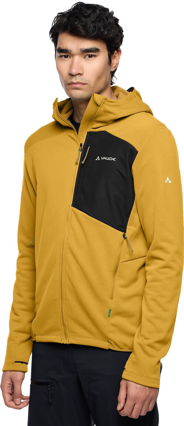 Ob auf dem Gipfel, im Basecamp oder im Alltag ? diese elastische Herren Fleece Jacke kombiniert funktionales Design mit erstklassiger Leistung. Als ideale Zwischenschicht unter einer Hardshell ist sie perfekt für anspruchsvolle Skitouren, rasante Freeride-Abfahrten und abenteuerliche Bergtouren geeignet. Die Waffelstruktur auf der Innenseite leitet Feuchtigkeit effizient nach außen ab und sorgt gleichzeitig für angenehme Wärme. Elastische Einsätze an der eng anliegenden Kapuze und den Ärmelabschlüssen halten den Wind draußen, während Daumenschlaufen dafür sorgen, dass die Herren Fleece Jacke beim Schichtenprinzip sicher an Ort und Stelle bleibt. Zwei höher angesetzte Eingrifftaschen bieten Platz für kalte Hände oder eine zusätzliche Mütze und eine praktische Brusttasche hält Taschentücher oder Kleingeld griffbereit. Als Mitglied mit Leader Status bei der unabhängigen Organisation Fair Wear engagiert sich VAUDE für faire Arbeitsbedingungen und faire Löhne. Material: Hauptstoff: 77% Wolle, 23% Polyester -enthält nichttextile Teile tierischen Ursprungs