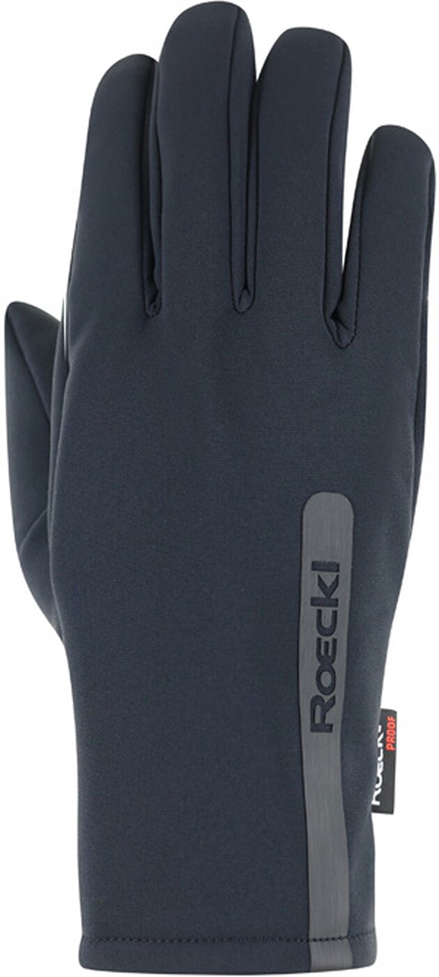 Der vielseitige, superbequeme und universell kombinierbare KOBUK 2 ist der perfekte Outdoor-Allround-Handschuh für kalte Tage und verschiedenste Einsatzbereiche, ob langer Spaziergang in der Natur, Schneemannbauen mit den Kids oder winterliche Einkaufsbummel in der City. Das elastische, winddichte und effizient atmungsaktive ROECK-PROOF® Andes Soft Shell schützt kälteempfindliche Hände zuverlässig vor Wind und Wetter und ermöglicht beste Bewegungsfreiheit für die Finger. Die Innenhand hat Roeckl Sports mit einem Besatz aus wasserabweisend ausgerüstetem, softem und zugleich strapazierfähigem DURASENSE Synthetiksuede ausgestattet, das einen guten Griff und zusätzlichen Abriebschutz bietet. Ein leichtes Futter und Micro Bemberg liefern extra Wärme. Und ein praktischer Gummizug am Handgelenk perfektioniert die Passform sowie den Tragekomfort und gewährleistet einen guten Abschluss am Handgelenk, sodass keine Wärme entweichen kann. Der KOBUK 2 präsentiert sich in edlem, vielseitig kombinierbarem Schwarz ? der Hingucker: der stylishe, großzügige geprägte Roeckl Sports Logoschriftzug längs über den gesamten Handrücken. Das Modell kann problemlos bei 30 Grad in der Maschine gewaschen werden. Material: Außenmaterial: 50% Polyester; 48% Polyamid; 2% Elastan; Futter: 100% Polyester; Handfläche: 50% Polyester; 50% Polyurethan
