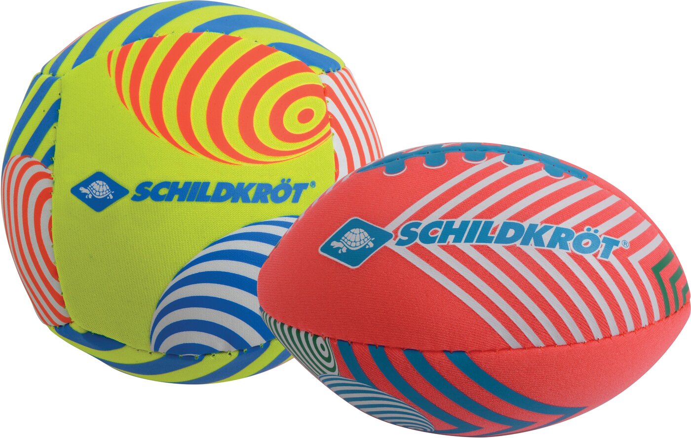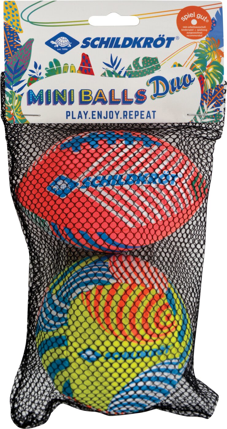 Der Mega-Spaß für Strand, Garten und Pool: 1 Mini-Beachvolleyball (Ø 9 cm), schaumgefüllt, bleibt leicht und springt auf der Wasseroberfläche und 1 Mini-American Football 12 x 8 cm (wattiert, saugt sich mit Wasser voll, wird zur Wasserbombe – der Getroffene ist garantiert Nass). Die kleinen Bälle sind durch die textile Oberfläche schön griffig. Kleinere Kinder können mit ihnen auch ideal Werfen und Fangen üben. Bitte beachten Sie die Größe der Bälle! ACHTUNG! Verpackung vor Abgabe des Produktes an Kinder vollständig entfernen. Über Schildkröt: Die über 100 Jahre alte deutsche Marke Schildkröt gilt als Erfinder des Tischtennisballs. Heute bietet Schildkröt neben Tischtennis auch eine sehr umfangreiche Funsport-, Rollsport- und Fitness-Kollektion an und gilt in gewissen Bereichen als Marktführer. Die Produktentwicklung erfolgt ausnahmslos in Deutschland. Die weltweiten Produktionsstätten werden streng überwacht und genügen höchsten Sozialstandards.