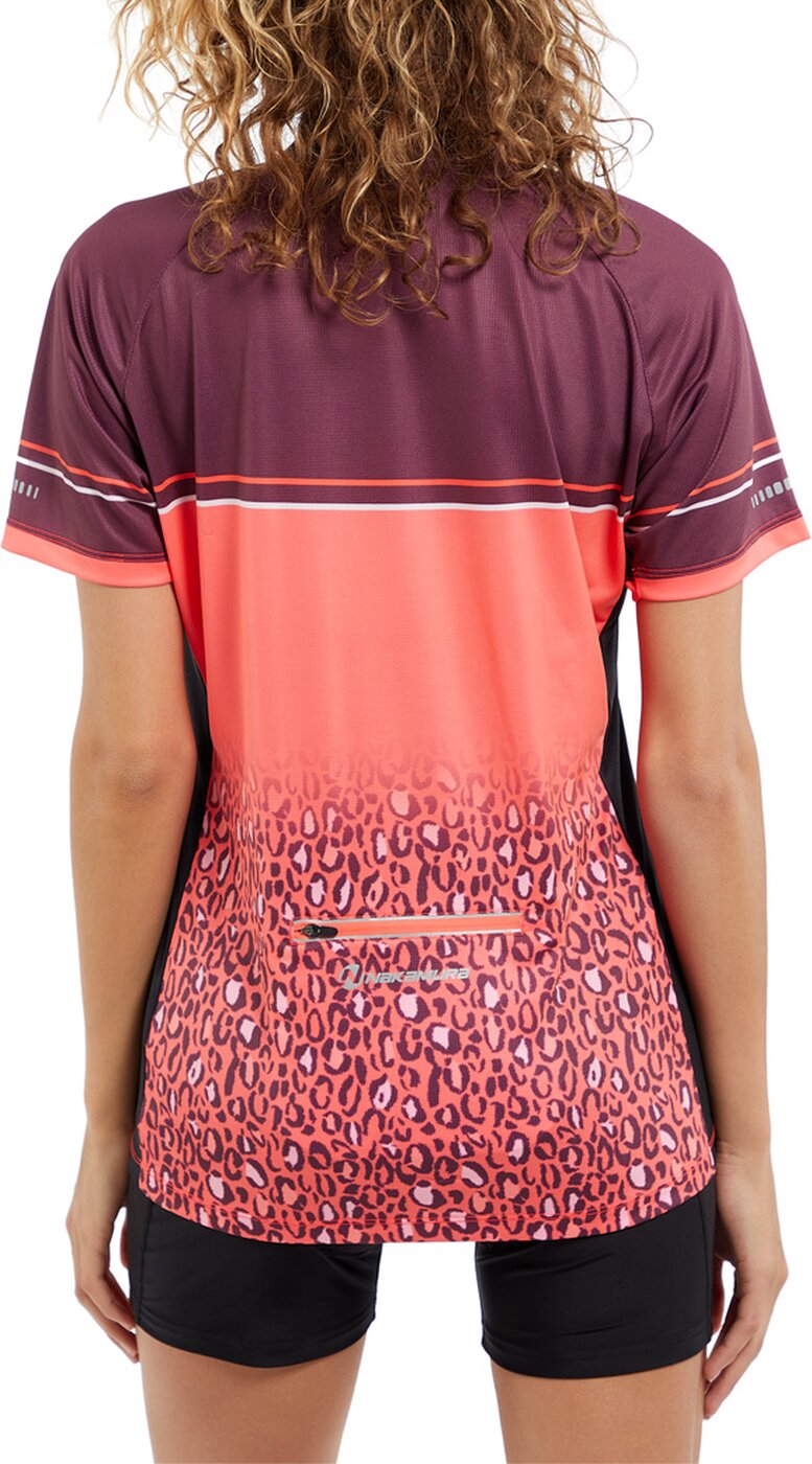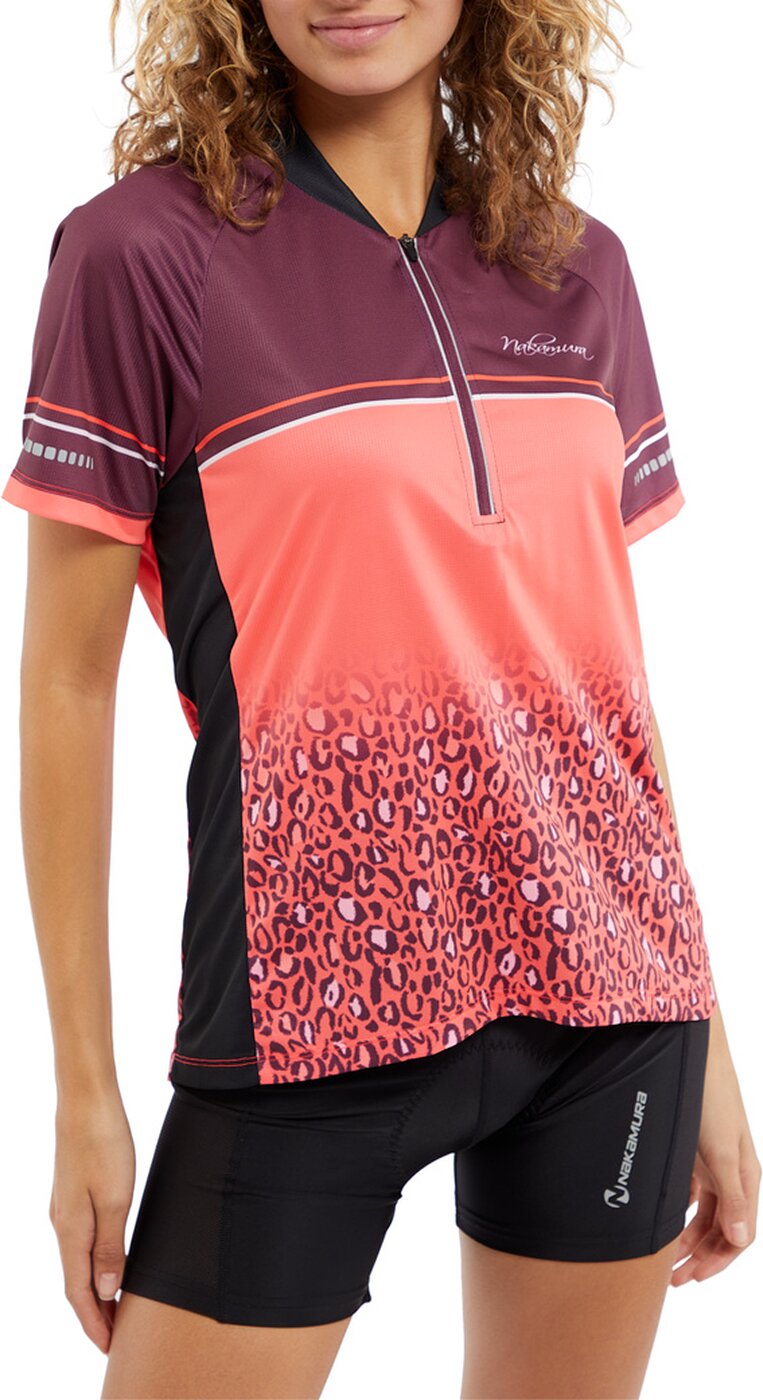 Das funktionelle Damentrikot Faith III von NAKAMURA mit halblangem Reißverschluss und femininer Stehkragenverarbeitung sieht nicht nur gut aus, sondern ist auch ein richtig komfortabler Begleiter für den Radsport. Durch seine feuchtigkeitstransportierende Wirkweise sorgt es den ganzen Tag über für trockenen Tragekomfort. Das Radtrikot mit o ffenem Saumabschluss und längerem Rücken ist leger geschnitten und besitzt eine praktische Reißverschlusstasche mit Reflektion und NAKAMURA-Logo. Auch praktisch sind die reflektierenden Elemente an den Ärmelabschlüssen. Material: 100% recyceltes Polyester, 105g/m²