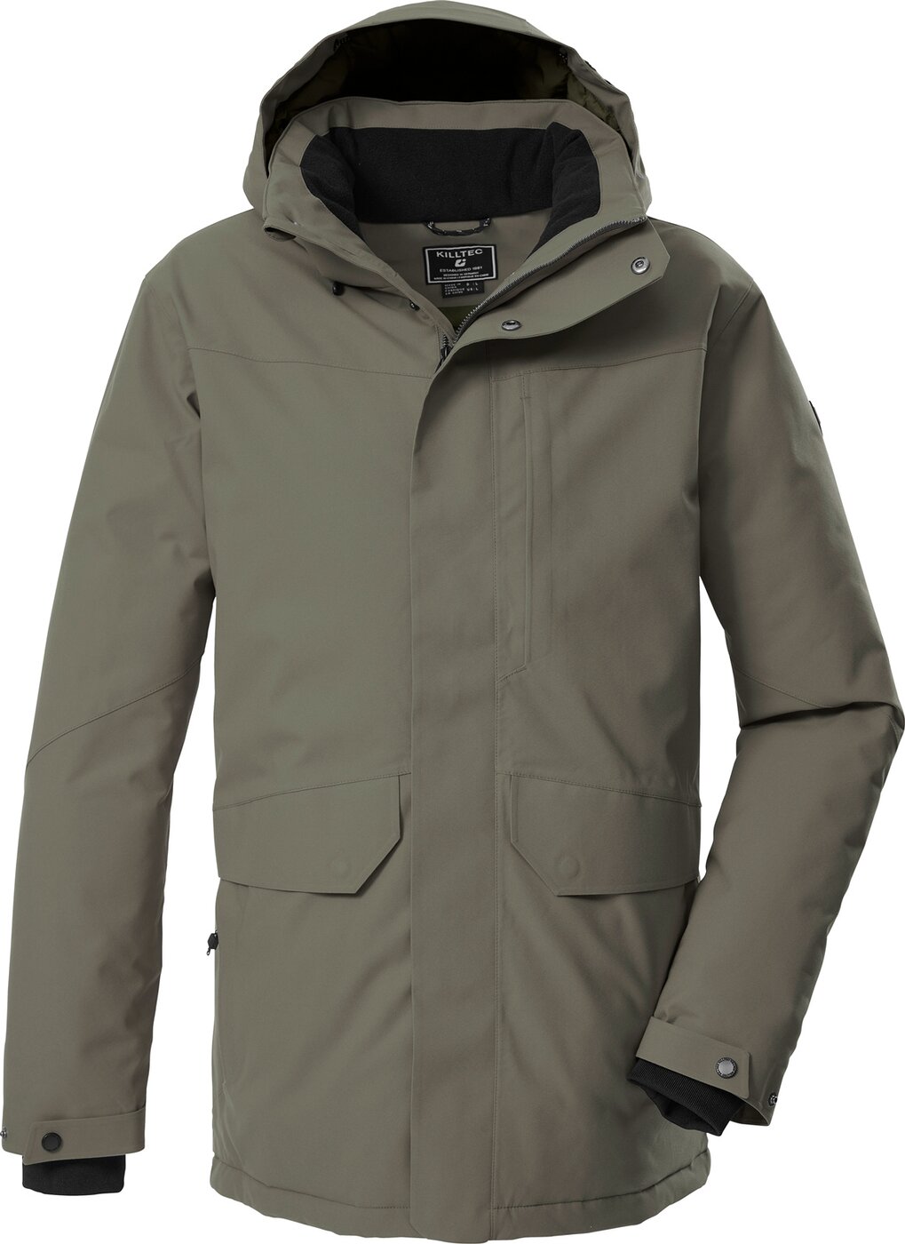 Der killtec Herren Winter-Funktionsparka besticht durch sein modernes Design und funktionale Eigenschaften. Er hat verschweißte Nähte und ist wasser- und winddicht mit einer 10.000 mm Wassersäule (Achtung: ab und zu sollte der Parka neu imprägniert werden). Gleichzeitig ist der Parka atmungsaktiv mit einer Wasserdampfdurchlässigkeit von 3.000 g/m²/24 h. Die Kapuze ist längenregulierbar und lässt sich bei Bedarf abzippen. Die Ärmelabschlüsse sind durch Klettverschlüsse verstellbar und mit bequemen Strickbündchen ausgestattet. Diverse Taschen bieten ausreichend Stauraum. Der verdeckte 2-Wege-Reißverschluss lässt sich von oben und unten öffnen und bietet so Bewegungsfreiheit. Zudem ist er mit einem Kinnschutz versehen. Dieser Parka wurde PFAs-frei imprägniert und teilweise aus recyceltem Material hergestellt. Material: Oberstoff: 100% Polyester, Futter: 100% Polyester, Wattierung: 100% Polyester (recycelt)