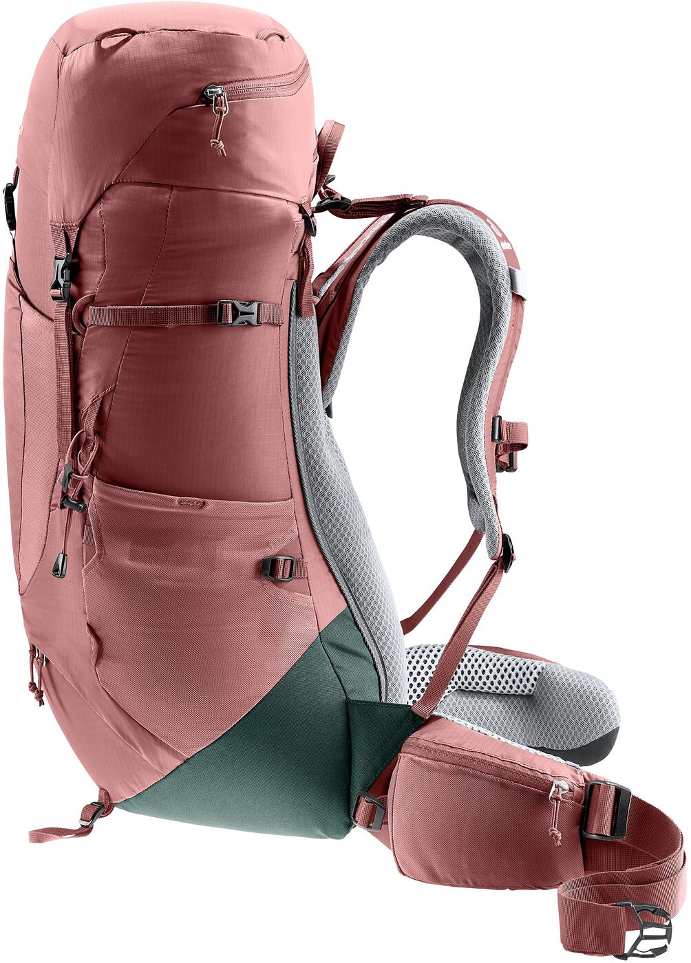 Der leichter Trekkingrucksack für ambitionierte Fernwanderinnen ermöglicht dank praktischer VariQuick-Rückenlängenverstellung und passgenauer ECL-Hüftflossen stabilen und komfortablen Halt und effektive Übertragung hoher Lasten. Der Aircontact Lite Kontaktrücken aus offenporigem Funktionsschaum mit Belüftungskanal bietet nicht nur spürbar gute Belüftung, sondern auch Platz zur Entlastung der Wirbelsäule. Das Ergebnis: Eine tolle Balance aus angenehmen Tragekomfort und geringem Eigengewicht für lange Tage zu Fuß in unberührter Natur. Material: 140D Polyamid RIPSTOP HT FD, 600D Polyester Recycled BS
