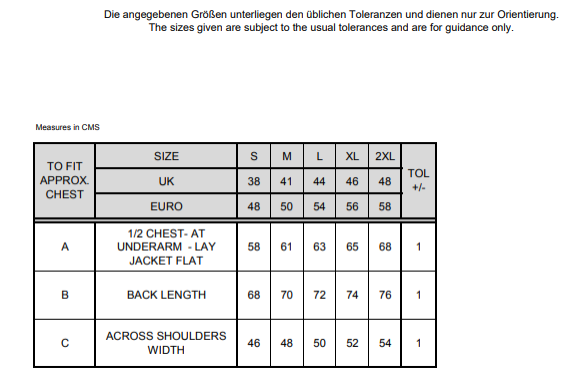 S, M, L, XL, XXL