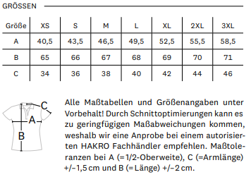 | Größe | XS, S, M, L, XL, XXL, 3XL |