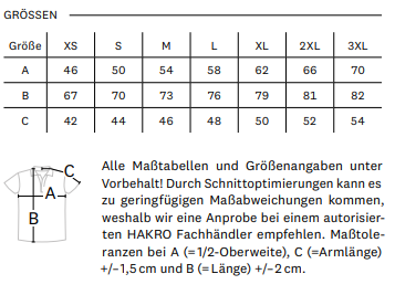 | Größe | XS, S, M, L, XL, XXL, 3XL |